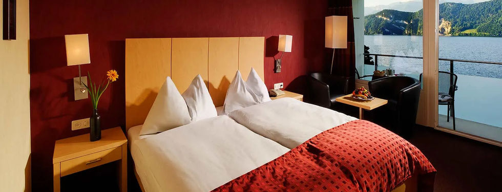 Les chambres doubles de 20 m², meublées de façon moderne, disposent toutes d'un balcon offrant une vue fantastique sur les Alpes de Suisse centrale et le lac des Quatre-Cantons.
