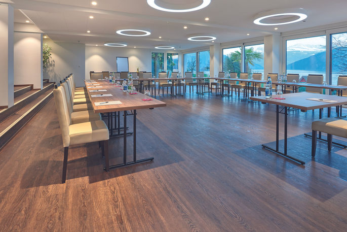 Salle de séminaire (avec vue sur le lac, projecteur, paperboard, tableau d'affichage)